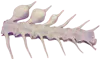 ※血管棘(けっかんきょく)とは、魚類の尾椎骨の下部にあるアーチ状の棘で、血管の通り道になっています